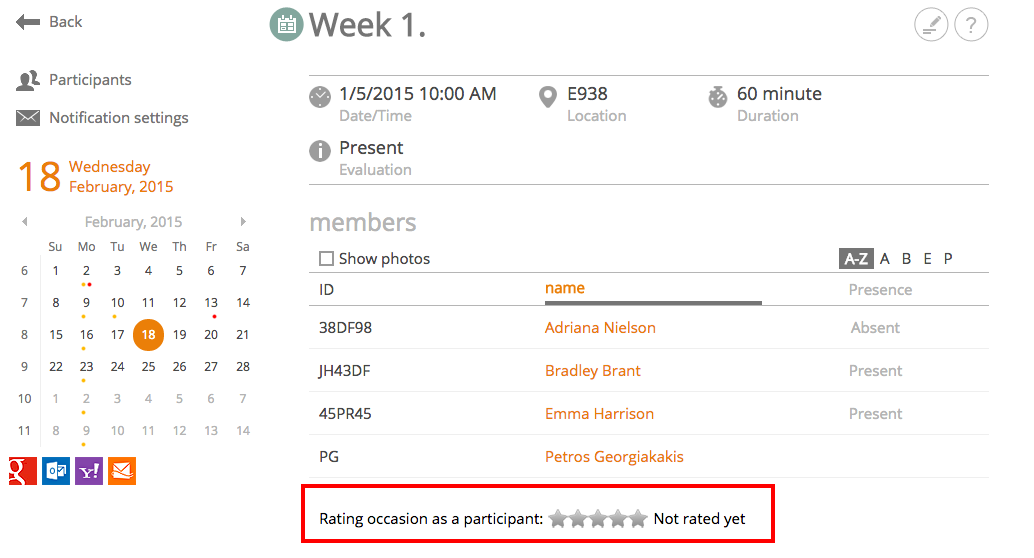 By clicking on the stars (they will turn orange) you can evaluate the occasion. The more you liked the class, the more stars you can give.